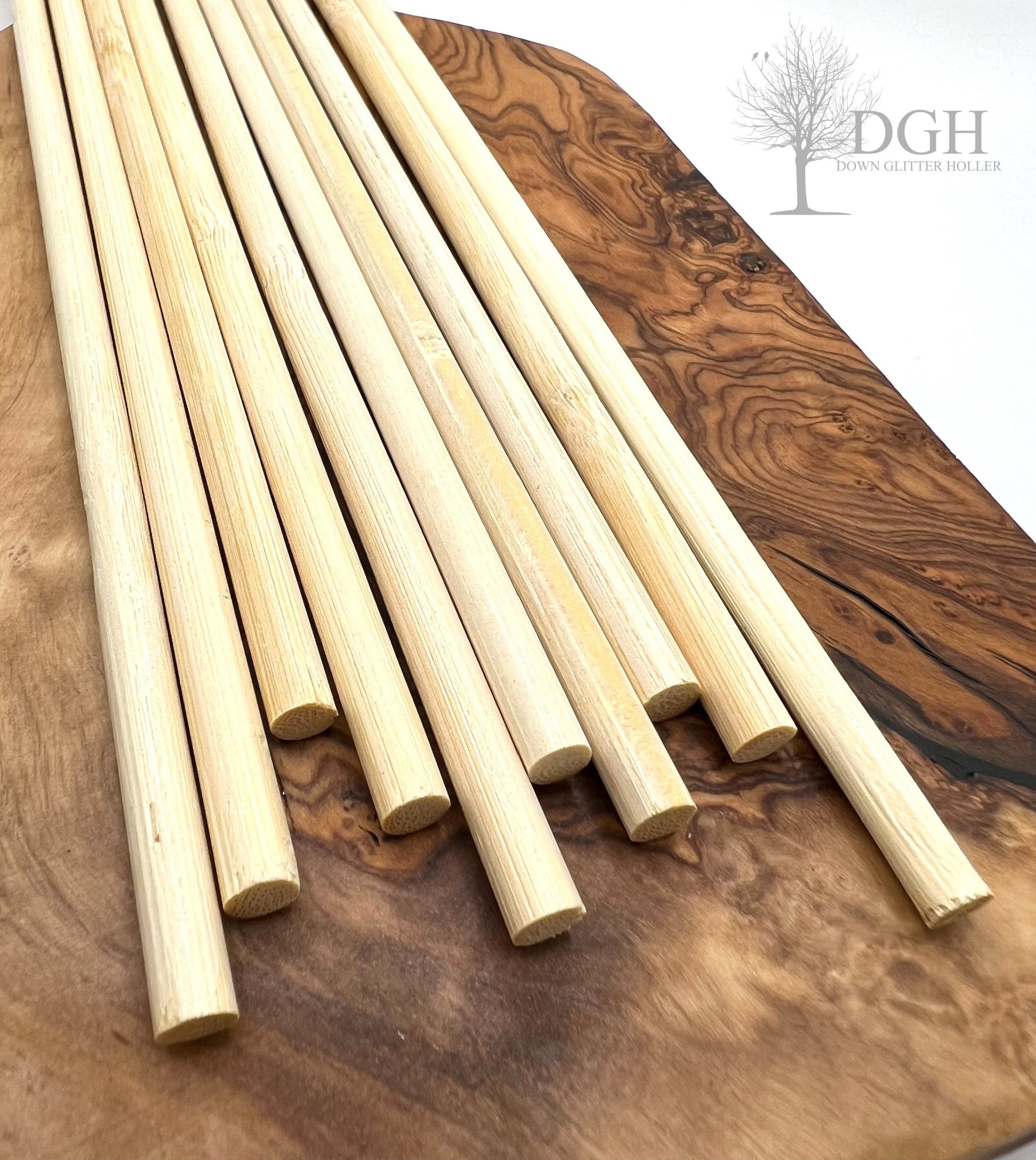 Each rod is approximately 1/4” by 12” long and are made of bamboo wood.